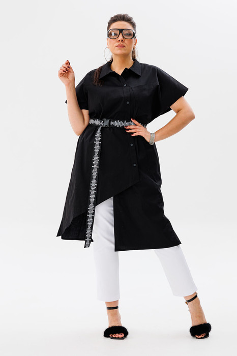 Ассиметричный крой этой туники от Анелли добавит неповторимости вашему стилю. Вы будете выглядеть модно и стильно, при этом чувствуя себя полностью свободно и комфортно. Разрезы по боковым швам позволяют вам двигаться легко и естественно, не сковывая ваши шаги. Крутой пояс идет в комплекте.