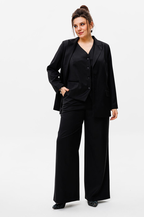 Этот костюм - это шик и универсальность. Жакет бойфренда сочетает в себе элегантность и комфорт, прямые брюки придают вам стройность и уверенность, а жилет завершает образ, добавляя нотку роскоши, брюки на резинке. Все это - актуальная классика, которая никогда не выйдет из моды.
