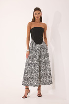 Брюки палаццо с высокой посадкой и резинкой по спинке обеспечивают комфорт и идеальную посадку, мягко облегая фигуру без стеснения движений. Боковые карманы добавляют практичности, сохраняя при этом чистоту линий. Широкие штанины струятся с грациозной легкостью, создавая эффект непринуждённой роскоши.