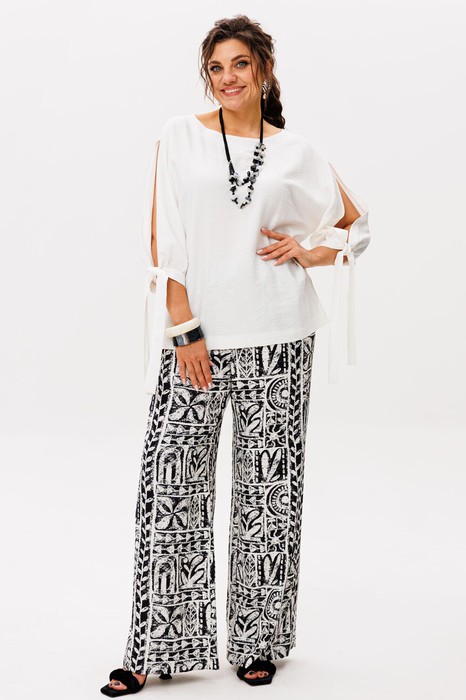 Этот костюм от Анелли в расцветке «геометрия» — не просто одежда, а настроение. В нём ты чувствуешь себя уверенно и непринуждённо: на прогулке, в кафе или в путешествии. Блуза и брюки идеально гармонируют вместе, но каждая вещь настолько самодостаточна, что легко станет основой новых образов.