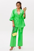 Принт "ягодный раф" словно всплеск красок на холсте, превращает костюм в произведение искусства. Каждая деталь продумана так, чтобы блузу и брюки можно было легко комбинировать с другими вещами — ансамбль звучит гармонично как в дуэте, так и соло.