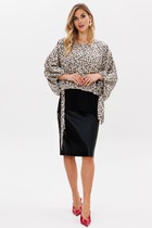 Асимметрия линий и продуманная свобода кроя создают образ, в котором гармонично сочетаются динамика и утонченность. Туника мягко струится по фигуре, ее миди-длина подчеркивает элегантность, а асимметричная застежка с петлями и пуговицами добавляет нотку неожиданности. Цельнокроеный короткий рукав сохраняет лаконичность, а воротник обрамляет горловину, придавая законченность силуэту. Разрезы по боковым швам дарят легкость движения, играя с воздушностью ткани.
