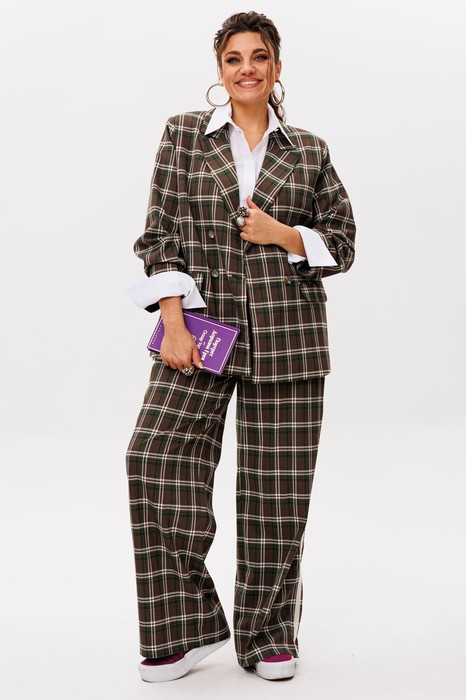 Несмотря на объемный крой, костюм от Анелли сохраняет женственные пропорции и легкость. Его можно компоновать как в ансамбле, так и раздельно, создавая многогранные стильные образы для работы или особых моментов. Это инвестиция в уверенность, безупречный вкус и чувство комфорта, которое не покидает вас с самого утра до позднего вечера.