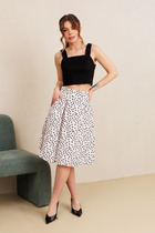 Платье на запах с длиной ниже колена красиво подчеркивает силуэт, деликатно адаптируясь к разным типам фигуры и создавая ощущение естественной уверенности и комфорта. Нежная вискозная ткань мягко струится при движении, а актуальный горошковый принт в кремовом оттенке добавляет образу свежести и романтичного настроения, оставаясь вне времени и трендов.
