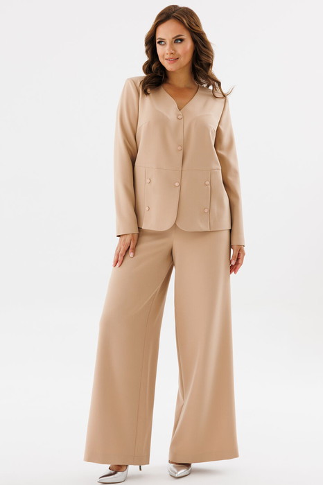 Комфортный брючный комплект из костюмно-плательной ткани, состоящий из жакета и брюк. Комплект будет идеально смотреться и с классическими туфлями, и с лоферами. Подойдет для работы и офиса, а также повседневной носки.