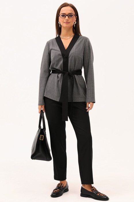Деловой брючный комплект состоит из прямого жакета и зауженных брюк. Он сочетает в себе сдержанность и элегантность. Этот универсальный комплект подойдет для офиса и работы, а также для повседневной носки и отдыха.