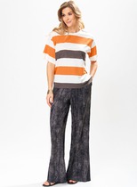 Базовый брючный комплект, состоящий из оригинальной трикотажной блузки и широких брюк-палаццо. Блузка с элегантными защипами по талии подчеркнет Вашу женственность и романтичность. Комплект идеально подойдет для рабочих будней в летний период, а также для дружеских встреч и романтических прогулок.