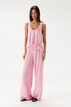 Комплект из топа, кардигана и брюк, выполненный из черного полотна с цветочным принтом. Характеристики: Топ укороченный, фигурный вырез горловины, узкие бретели, по спинке резинка со сборкой, по переду под лифом стабильная вставка, застежки в изделии нет. Длина изделия 28 см. Кардиган прямого кроя , отложной воротник, застежка центральная на петли пуговицы, по переду крупные карманы, рукав втачной, по низу рукава манжета на пуговичке, по линии талии шлевки, в комплекте пос из ткани основного изделия, в боковых швах разрезы 73 см. Длина по спинке 130 см, длина рукава 60 см. Брюки прямого свободного кроя , пояс брюк на резинке, в боковых швах карманы. Длина 110 см.