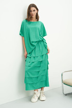 Этот 2-х предметный комплект состоит из корсетного топа и брюк.    Корсетный топ с открытыми плечами — воплощение чувственной элегантности. Открытые плечи подчеркивают линию шеи и ключиц, а корсетный крой создает безупречный силуэт. Роскошный силуэт и акцентная баска делают его идеальным выбором для особенного вечера. Также топ отлично вписывается в повседневные образы.