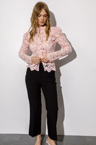 Этот 2-х предметный комплект состоит из жакета и брюк. Стильный жакет в элементами барокко. Защипы по окату пукава придают вышность и грацию. Притачная баска создают силуэт, где четко прорисована талия и скрыта линия бедер. Баска при движении создают струящиеся мягкие складки. Воротник-стойка с застежкой на пуговички в тон изделия придают утонченность и хрупкость фигуре.