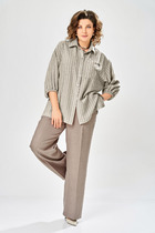 Комплект женский состоящий из блузки и юбки. Блузка прилегающего силуэта, отрезная по линии талии, вырез горловины-круглый, рукав 3/4 со складками по окату, застежка по спинке на пуговицы, изделие на подкладке, со съемным посом. Юбка прямая, зауженная к низу, на обтачке, застежка сзади на молнию, в среднем шве заднего полотнища-шлица, изделие на подкладке.
