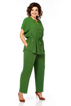 Комплект женский , состоящий из жилета и юбки. Жилет укороченный, прилегающего силуэта, двубортный с отложным воротником с лацканами, по переду и спинке вертикальные рельефы, по переду обманки-клапаны, изделие на подкладке. Юбка прямая, зауженная к низу, по переду разрез встык и имитация застёжки,по заднему полотнищу средний шов и молния, изделие на поясе, на подкладке, по переднему полотнищу боковые карманы со скосом.