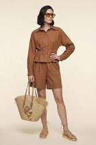 Комплект женский состоящий из жакета и брюк. Жакет прилегающего силуэта с застёжкой спереди на пуговицы, с отложным воротником с лацканами, с фигурным подрезом по переду и спинке и вставкой из сетки, с карманами по переду, с втачным рукавом. Изделие на подкладке. Брюки узкие, на поясе-кокетке, с застёжкой спереди на молнию и пуговицы, с боковыми карманами и стрелками.