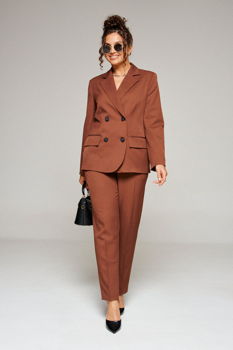 Классический, с деловым акцентом, женский костюм, состоит из 2-х предметов: жакета и брюк.