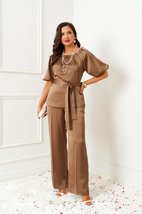 Элегантный наряд состоит из 2-х предметов одежды: блузки и брюк.