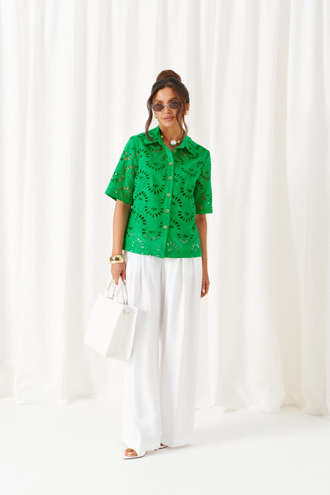 Комплект с широкими брюками «палаццо» идеально подойдет для создания лаконичных офисных луков, а также для повседневного использования. Такие модели смотрятся необыкновенно женственно и эффектно.