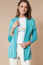 Комплект женский-двойка, из текстильной ткани, жакет удлиненный, полуприлегающего силуэта с центральной бортовой застежкой на пуговицы до линии перегиба лацкана. Спереди рельефные швы от плечевого шва, отрезной бочок и карман с клапаном. Спинка с рельефами от плечевого шва. Рукав втачной, двухшовный. Воротник пиджачного типа. Жакет на подкладке, длина по спинке 67 см, длина рукава 62 см. Брюки прямые, классические, с заутюженными стрелками, по переду обработаны карманы с отрезным бочком, застежка на тесьму-молнию и 1 пуговицу. На задних половинках обработаны вытачки и имитация карманов с листочкой, пояс в брюках притачной. Длина брюк от талии по боковому шву 103 см.