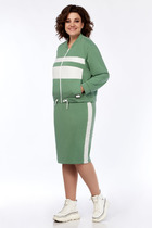Женский комплект 2-х предметный состоит из жакета и юбки. Жакет классический,с V-образным вырезом, полуприлегающего силуэта с центральной бортовой застежкой на петли-пуговицы. Спереди рельефные швы от плечевого шва, отрезной бочок и карман с втачной листочкой. Спинка с рельефами от плечевого шва. Рукав втачной, двухшовный, укороченный. Перед жакета на подкладке. Длина рукава 48 см, длина жакета по спинке 59 см. Юбка прямого силуэта, верхний срез юбки обработан обтачкой, заднее полотнище со средним швом, застегивается на потайную молнию. Шов переходит к низу в шлицу. Юбка по переднему и заднему полотнищу с кокеткой и вертикальными рельефами, швы отстрочены в цвет юбки. Длина по боковому шву 70 см. Юбка на подкладке.