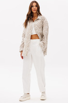 Комплект женский, 2-х предметный, состоит из жакета и и брюк. Жакет женский удлиненный, из текстильной ткани, на подкладке, полуприлегающего силуэта с центральной бортовой застежкой на пуговицы до линии перегиба лацкана. Спереди рельефные швы от плечевого шва, отрезной бочок и карман с клапаном. Спинка с рельефами от плечевого шва. Рукав втачной, двухшовный, по низу рукава обработана шлица на петли-пуговицы. Воротник пиджачного типа. Длина по спинке 66 см, длина рукава 62 см.Брюки прямые,классические, с заутюженными стрелками,по переду обработаны карманы с отрезным бочком,застежка на тесьму-молнию и 1 пуговицу.На задних половинках обработаны вытачки и имитация карманов с листочкой, пояс в брюках притачной. Длина брюк от талии по боковому шву 103 см.