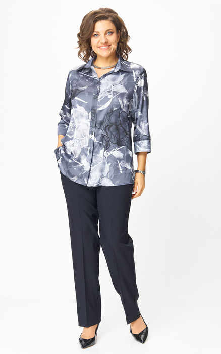 Этот комплект создан для того, чтобы вы забыли о вопросе «Что надеть?». Мы объединили две вещи, которые составляют основу стильного и практичного гардероба. Верх: блуза прямого кроя из нежного текстиля. Рукава 3/4 с манжетами и отложной воротник дарят образу лёгкость и утонченность. Центральная застежка на пуговицы и боковые разрезы добавляют практичности. Длина по спинке 74 см, длина рукава 45. Низ: классические прямые брюки с заутюженными стрелками, которые визуально вытягивают силуэт. Скрытая резинка по бокам гарантирует невероятный комфорт, сохраняя безупречный вид спереди. Длина брюк от талии по боковому шву 103 см.