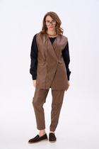 Блузка, юбка и жакет. Юбка А-образная на резинке. Блузка с целенокроенным рукавом . Жакет с воротником стойкой, подрезом по переду с карманом листочкой. Рукав втачной 3/ 4 с манжетом и разрезом. Жакет на подкладке.