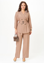 Костюм женский из кулирки футболка+бриджи. На футболке принт в виде надписей, рукав короткий втачной. Бриджи из набивной ткани в виде абстракции, ниже колена с манжетами, без карманов.
