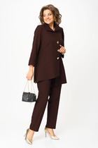 Костюм женский с юбкой. Кофта прямого силуэта с застежкой на тесьму-молнию по горловине переда. Линия плеча спущенная, рукав втачной одношовный с притачным манжетом по низу. Воротник-стойка. По низу кулиса с резинкой на фиксаторах. В качестве отделки используется отделочный кант и фурнитура. Юбка зауженная в низу, на переднем и заднем полотнище средний шов заканчивающийся шлицей. Верхний срез обработан поясом с резинкой. В качестве отделки используется отделочный кант и фурнитура.