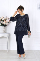 Брюки - палаццо с центрально застежкой на тесьму молнию с гульфиком и откоском; с притачным поясом со шлевками, застегивающимся на 1 прорезную петлю и пуговицу. Задняя часть пояса - на резинке. ПП брюк со складками, переходящими в стрелки и боковыми карманами. ЗП брюк с 2-мя парами таллиевых вытачек и стрелками.