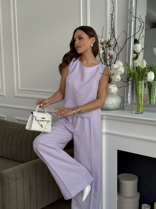 Костюм женский двух-предметный, состоящий из брюк и блузы.