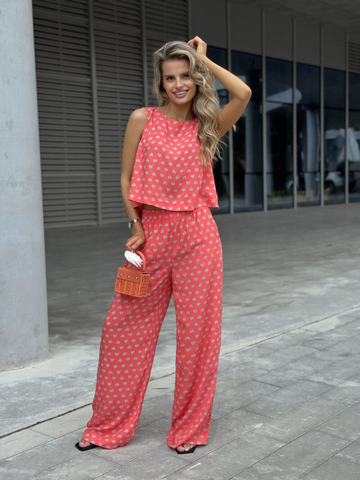 Костюм женский двух-предметный, состоящий из брюк и блузы.