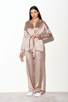 Настоящее произведение искусства!!! Уверенность, элегантность, этого костюма делает его идеальным выбором для важных деловых встреч, корпоративных мероприятий и незабываемых вечерних выходов. Изысканный комплект тройка выполнен из качественной стрейчевой ткани. Топ облегающего силуэта с рельефами по полочке, по спинке выточки и потайная молния в среднем шве. Брюки клёш от колена с за утюженым кантом, которые подчеркнут вашу утонченность и изысканность. Застежка молния по переду, по бокам прорезные карманы, пояс со шлевками и эластичной лентой по бокам. Жакет "BLAZER" без застежки на подкладке, рукав втачной расширенный к низу с декоративной шлицей. Изящность комплекту придает контрастная отделка воротника, планок, разреза шлицы и съемного декоративного цветка ручной работы подчеркнет вашу неотразимость и безупречный вкус.
