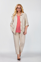 Идеальное решение на летний период, 2-х предметный комплект, состоящий из блузы и брюк. Легкая, струящаяся ткань, не стесняет движение и сохраняет привлекательный, женственный образ. Женственная блуза, которая создает эффектный и стильный образ. Изделие полуприлегающего силуэта, талия фиксируется поясом из основной ткани. Воротник рубашечный. V-образный вырез горловины. Рукав втачной, низ обработан притачной манжетой. В боковых швах имеются разрезы, Брюки прямые, с функциональными боковыми карманами, пояс притачной на резинке в круговую
