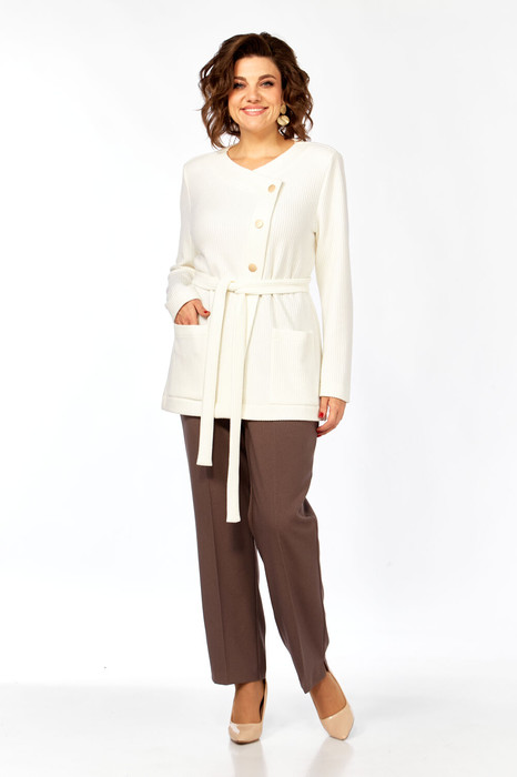 Образ, который поможет создать гармоничный и стильный внешний вид. Комплект 2-х предметный состоит из джемпера и брюк. Джемпер полуприлегающего силуэта выполнен из мягкого трикотажа. По переду, полочки выполнены асимметрично с планкой по диагонали, предусмотрены накладные функциональные карманы. Вырез горловины V-образной формы. Рукав втачной. Брюки классические с заутюженными стрелками, слегка зауженные к низу, оформлены притачным поясом, частично на резинке. Застежка спереди брюк на молнию и петлю-пуговицу.