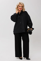 Костюм свободного прилегания выполнен из мягкой немнущейся ткани. Блузон с капюшоном и цельнокроеным рукавом по низу которого кулиса с завязками. По полочки блузона выполнен карманы "рамки", низ блузона затягивается на кулису. Брюки- шаровары на притачном поясе с резинкой, по боковым брюк карманы. низ брюк на кулисе. Декорированы брюки густой дизайнерской вышивкой "кошка" Длина брюк 100 см. длина блузона-62 см.