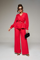 Костюм женский состоящий из туники и брюк, туника прямого силуэта с ассиметричным вырезом до бедра, и накладным карманом по линии груди. Рукава втачные с широкой манжетой по низу.. Брюки зауженные к низу, на притачном поясе с резинкой и завязкой. В боковых швах расположены функциональные карманы.