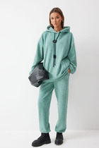 Костюм женский 2х предметный выполнен из тонкой костюмной ткани, состоит из Жакета и брюк. Жакет полуприлегающего силуэта, по полочке жакета расположена накладная деталь с функциональным прорезным карманом "рамка", и декоративные фальш-карманы в области груди. Рукав втачной длинный, с открытыми плечами. горловина обработана плоско лежащим воротником -стойкой. Застежка жакета - потайная (супатная) на петли-пуговицы. Жакет на полной подкладке. Брюки классического кроя, прямые от бедра, с высокой посадкой. На брюках расположены функциональные карманы по переду, и прорезной карман с листочкой на задних частях брюк. Пояс в брюках втачной с резинкой, застежка молния на гульфике и петля- пуговица.