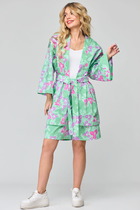 Костюм женский, состоит из рубашки и шорт, выполнен из костюмной ткани. Рубашка свободного кроя, по полочке изделия расположены накладные карманы. Рукав изделия длинный. Горловина отложной воротник на стойке. По спинке изделия расположена кокетка и декоративный вырез с бантом. Застежка петли-пуговицы на планке. Шорты прямого кроя с небольшим подворотом по низу. Изделие на притачном поясе с резинкой. В боковых швах расположены карманы. Застежка молния на гульфике и петля-пуговица