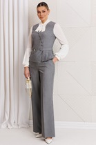 Модный трикотаж стал бесспорным "must have" в  этом осеннем сезоне. Носить любимые и  практичные трикотажные вещи теперь можно смело, не беспокоясь о модных тенденциях, а только соответствуя им. Практичность такого гардероба сложно переоценить, вещи из одного лука можно смело сочетать с другими вещами и при этом выглядеть супер современно. Комплект состоит из джемпера и юбки. Джемпер свободного силуэта с втачным рукавом. Застежка центральная на петли и пуговицы. По линии борта, низу изделия, рукавам и горловине - отделочная эластичная тесьма "довяз" с легким блеском. Юбка зауженная к низу, на притачном поясе с  частично  эластичными вставками в области боковых швов. Длина джемпера около 52 см. Длина рукава около 60 см. Длина юбки около 55 см.
