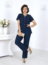 Брюки современного кроя, свободные вверху и зауженные к низу на притачном поясе со шлевками, эластичном в области спинки. Передние половинки брюк с наклонным боковым карманом и большой односторонней складкой, визуально преобразующей прямую полоску в наклонную от центра передних половинок к боковому шву. Задние половинки брюк с талиевыми вытачками. По низу брюк-цельнокроеный манжет.