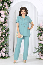 Костюм с жилетом - прекрасное решение для смелых экспериментов. Жилет полуприлегающего силуэта с асимметричной застёжкой, фигурной линией низа и регулирующийся кулисе по спинке. Полочки с отрезным бочком и нагрудными вытачками, спинки - с центральным швом, отрезным бочком и регулирующийся кулисой с фиксаторами. Брюки "баррел" на притачном поясе со шлёвками (эластичном в области спинки), с наклонными карманами , мягкими складками защипами по верху брюк и вытачками по низу. Джемпер трикотажный, с длинным рукавом, полуприлегающего силуэта.