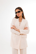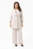 Женский комплект двойка РУЖАНА состоит из блузки и брюк. Блуза изготовлена из легкой текстильной ткани (искусственный шелк). Блузка полуприлегающего силуэта со спущенным рукавом, по полочке и спинке рельефы, по талии подрезы со сборкой. По горловине блузки нашито тонкое кружево, низ рукава обработан кружевом. Низ изделия обработан швом в подгибку. Брюки прямого силуэта с застежкой на молнию и пуговицу. По переду брюк карманы, верх брюк обработан поясом, по спинке резинка. Низ обработан в подгибку.