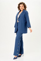 Джемпер — это голос комплекта, его эмоциональный центр. Прилегающий силуэт мягко очерчивает фигуру, а вытачка по груди — как легкий штрих скульптора. Горловина, обработанная планкой, завершает образ сдержанно и элегантно. Но главное — печать «Леопард» на полочке. Это не просто принт, это вызов, энергия, дикая грация, которая прячется под спокойной поверхностью.
