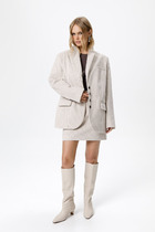 Юбка на подкладке, слегка зауженная к низу, спереди рельефы на которых расположены шесть декоративных пуговиц.