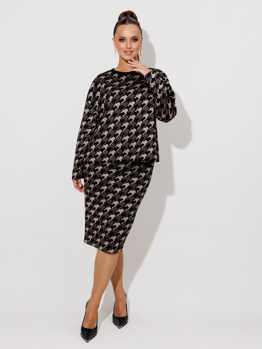 Совместные покупки Нижний Тагил Женская одежда Костюмы, комплекты — Костюм Galean Style 990 чёрный с бежевым гусьлапка
