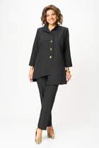 Современный женственный комплект, состоит из кардигана и прямых брюк. Кардиган имеет прямой силуэт и длинные рукава с мажетами (из ткани кошкорсе). Вырез горловины Y-образной формы с притачной планкой. Застежка по центру переда на петли и пуговицы. На переде удобные карманы. По планкам, по карманам, проложена отделочная строчка. Брюки длинные, прямые. По передним половинкам функциональные карманы. Пояс из ткани кошкорсе, с резинкой и шнуром внутри.