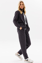 Костюм Gowear из футера в стиле smart casual поможет создать в меру строгий и одновременно расслабленный образ. Костюм состоит из жакета и прямых брюк. Жакет прямого силуэта с воротником и лацканами, имеет удобные карманы и застежку на 2 пуговицы. На левом лацкане вышивка-логотип в контрастном цвете. Низ и борта имеют открытые края (эффект необработанного шва), укреплены дополнительной строчкой. Жакет без подкладки. Брюки прямые. На передних половинках - отделочная строчка по стрелкам и удобные боковые карманы. Пояс из ткани кошкорсе, с резинкой и контрастным шнурком.