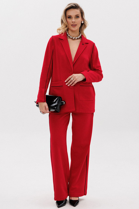 Костюм в стиле smart casual с контрастными кантами в швах создаст в меру строгий и одновременно расслабленный образ как для работы, так и торжественного мероприятия.