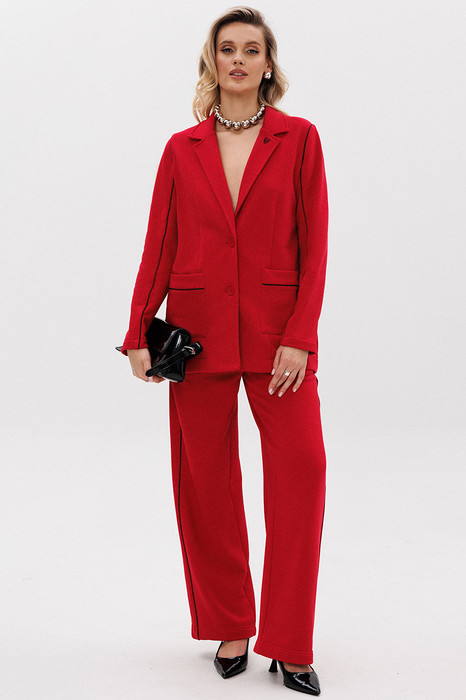 Костюм в стиле smart casual с контрастными кантами в швах создаст в меру строгий и одновременно расслабленный образ как для работы, так и торжественного мероприятия.