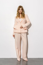 Джемпер с втачным воротником-стойкой и втачными рукавами. Брюки широкие с отрезным поясом, в пояс вставлена резинка.На переде пояса выметаны петли и вставлен шнур.