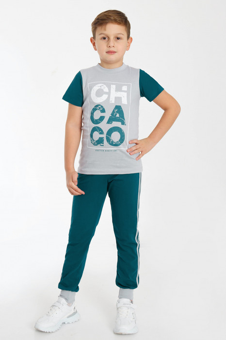 Костюм домашний из хлопкового трикотажа. На футболке печать, брюки с лампасами. низ на манжете